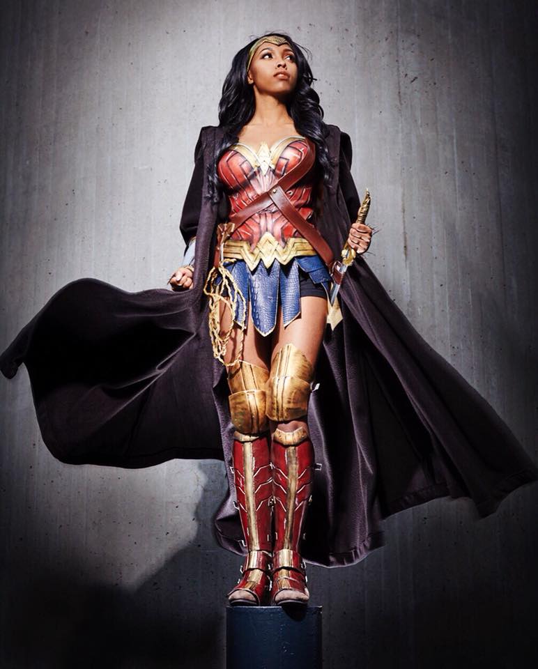 The wig (if it is a wig, I don't know) is especially long and a beautiful shade of black. There are also brown straps over her shoulder traveling down her armor and ending at just the hips. The famous Golden Lasso also makes an appearance too! The personality CutiePieSensei exhibits in these pictures is just true joy. I can easily tell she has a blast wearing her <3. Check them out!